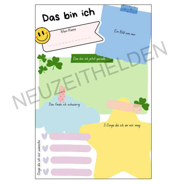 Ein liebevoll gestaltetes Selbstreflexions- und Stärkeblatt, das Kinder und Jugendliche dabei unterstützt, sich selbst bewusster wahrzunehmen.
